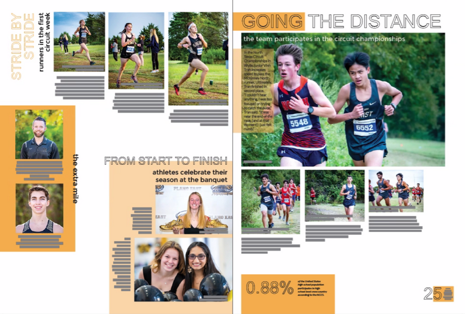 As the Creative Director for the Plano East Yearbook Staff from 2020-2021, my role included designing all the spreads for the yearbook. Here are some of my most beloved pages from "One in 3000, 3000 in one."